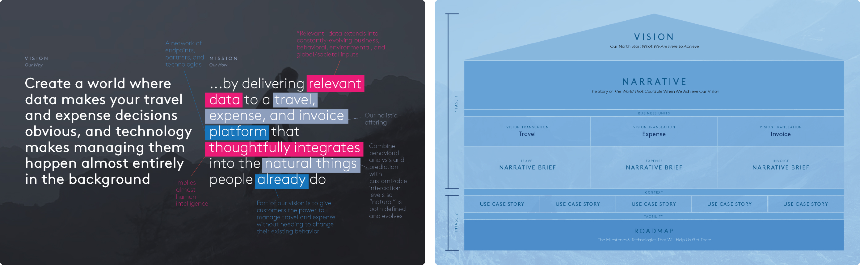 The work began by defining SAP Concur's future vision—aligning leadership around a clear articulation of where the platform is going and why it matters. From there, that vision was translated into a narrative and strategic framework directly connected to the product roadmap. We partnered with product and marketing leaders to shape how innovation is prioritized, built, and communicated—ensuring every release reinforces the same story.